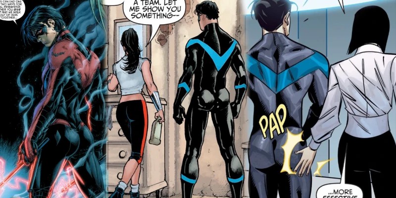 E nem adianta negar: metade do fandom lê Asa Noturna só pra ver como o desenhista decidiu entregar a “traseira atlética” dele dessa vez.
