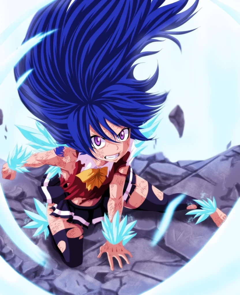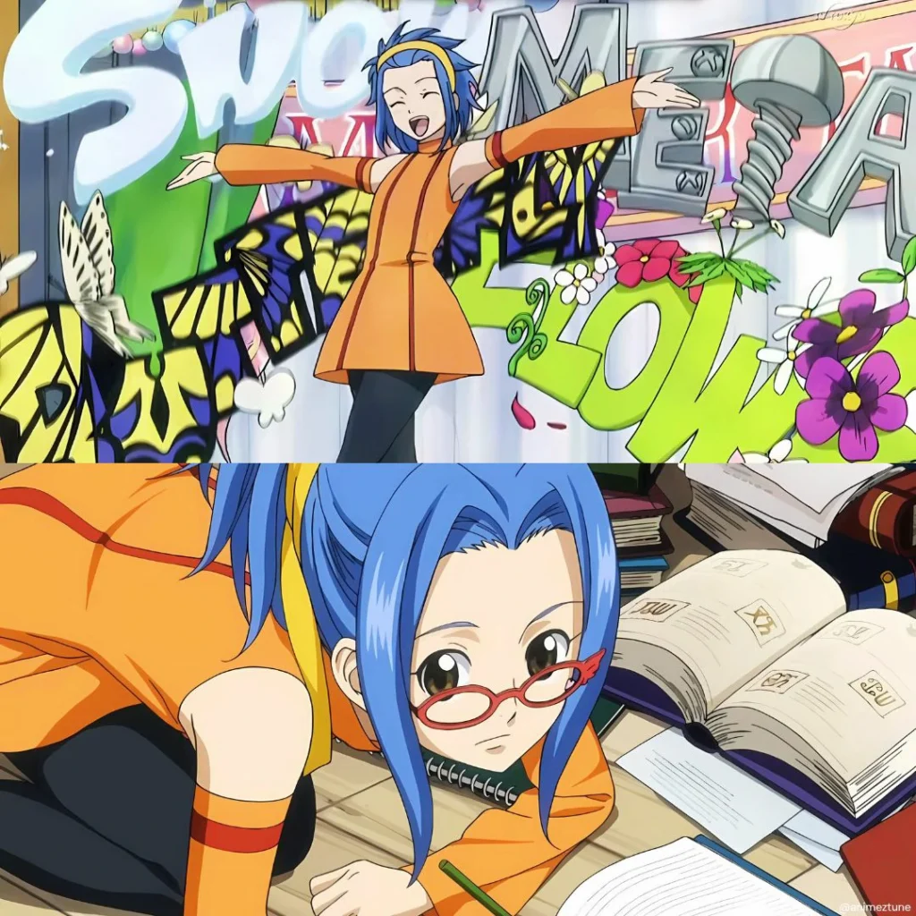 Levy é uma das magas mais inteligentes da guilda, e sua magia reflete isso. Com o Solid Script, ela pode materializar palavras em forma física, criando elementos como fogo, ferro ou vento apenas escrevendo.