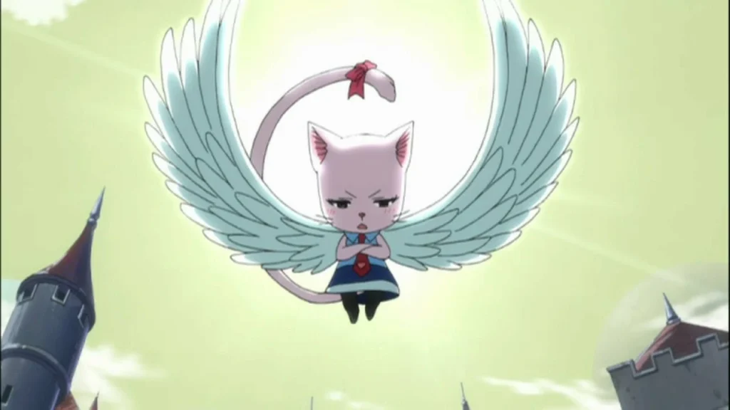 Além disso, Happy frequentemente auxilia Natsu em combate, carregando-o para ataques aéreos ou ajudando na locomoção durante confrontos intensos. Apesar de não possuir grande poder ofensivo, sua utilidade e presença constante fazem dele um dos personagens mais importantes do grupo.